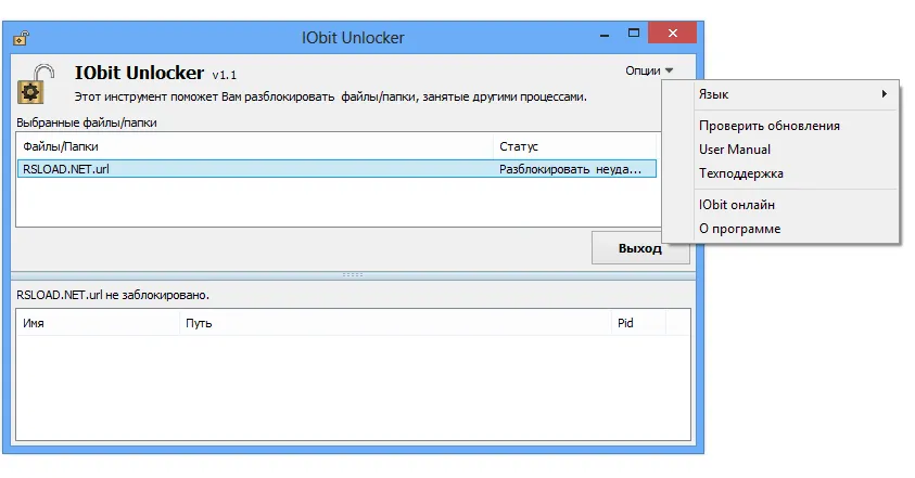 В случае, если удалить файл в автоматическом режиме не получается, программа может вывести информацию о процессах, которые обращаются к файлу. Это поможет пользователю самостоятельно понять, какие процессы мешают удалению.