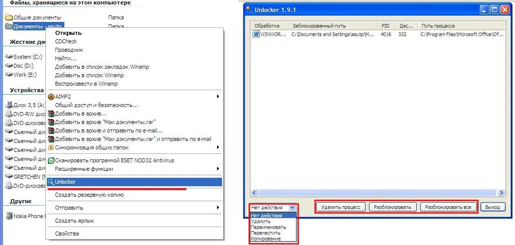 Unlocker — программное обеспечение для разблокировки файлов и последующего их удаления или изменения.